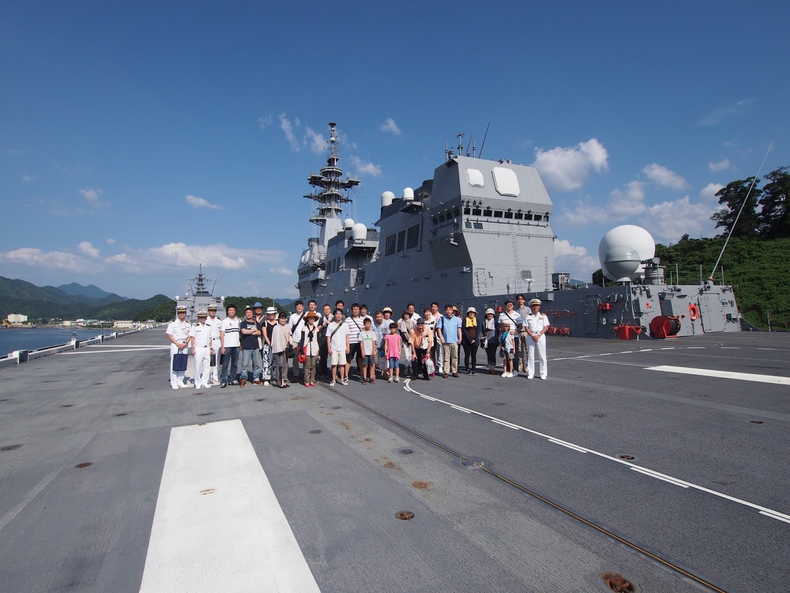 甲板上で集合写真 広報担当の幹部の方や艦長さんも一緒です |